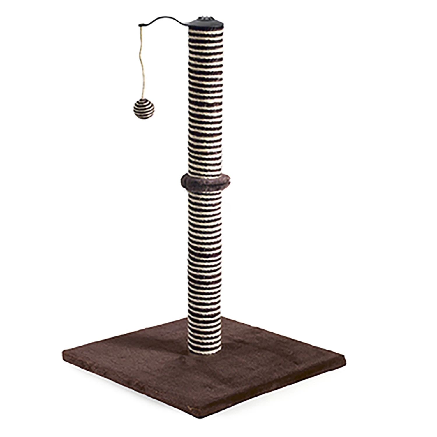 The Premo XL Acticat post is approximately 70cm high and incorporates the new bi-coloured sisal rope post, with a soft chocolate plush base and a toy ball on a rotating arm.