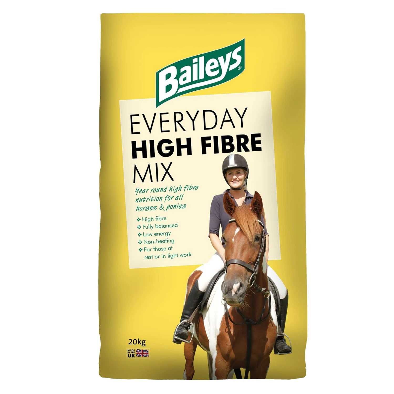 Everyday High Fibre is perfect all year-round choice for horses and ponies whose energy requirements are low and it should help maintain condition without causing excitability, providing straight forward essential nutrition and representing great value.