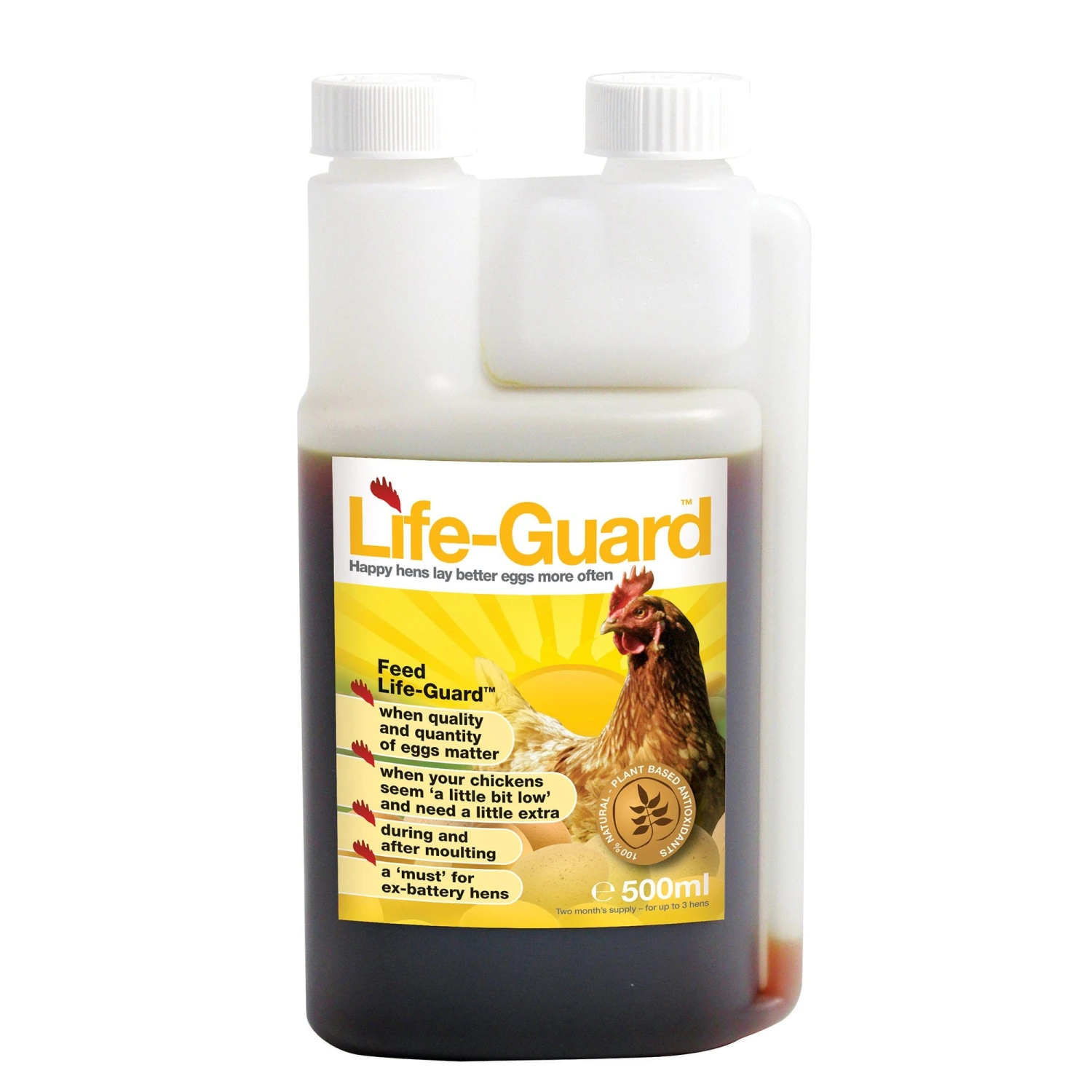 Feed 7.5ml Life-Guard in a 3L* drinker daily to support health and vitality in domestic fowl