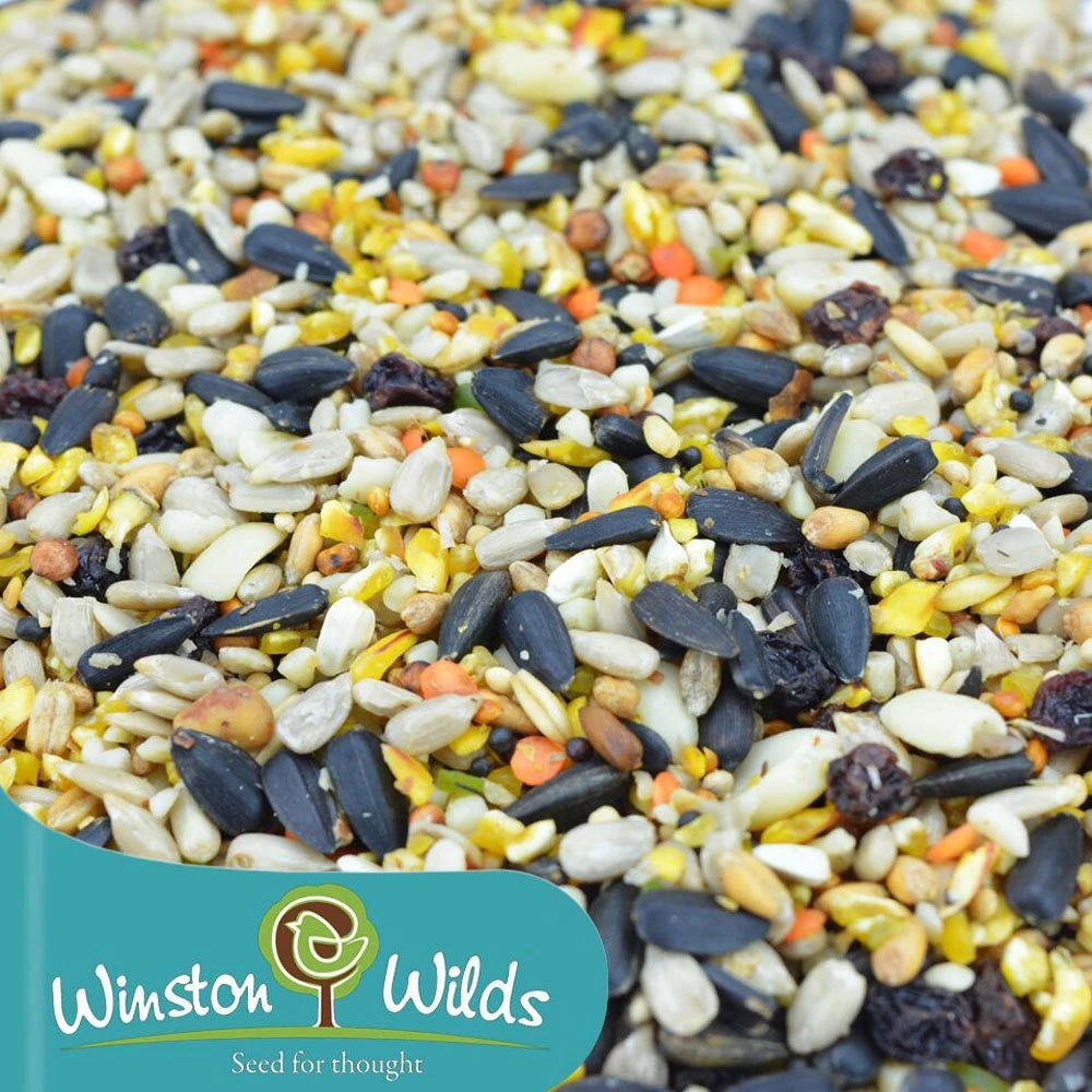 Winston Wilds premium seed mix is a outstanding low wheat seed blend containing fruit for blackbirds and song thrushes, high energy giving sunflower hearts and peppered throughout with protein rich peanut kibbles, loved by Tits.