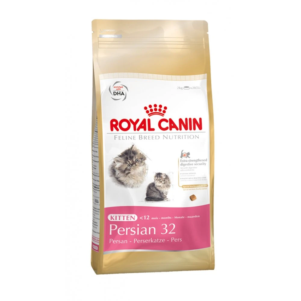 Kitten Persian 32 uses an exclusive formula with ultra-digestible proteins which limit the amount of fermentable residue in the intestine, fructo-oligo-saccharides and beet pulp to help balance the intestinal flora, and EPA/DHA to help support the intestinal mucosa.