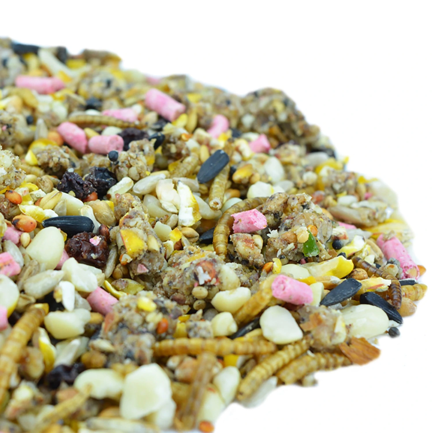 A super charged seed mix erupting with essential energy from the juicy crumble inclusion, made from our much loved fat ball recipe. Crumbled and combined with sunflower hearts, Berry Suet Pellets, oats, dried mealworms and fruit. Small seed and grains are bathed in oils and enriched with goodness.